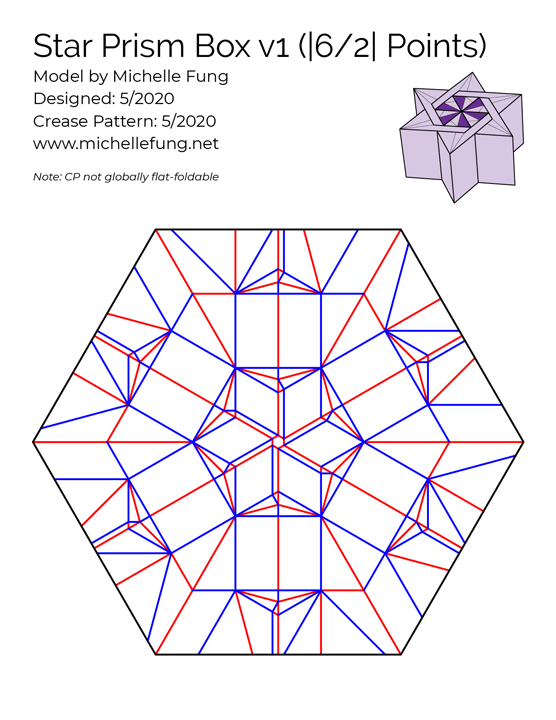 Since these models are so geometric, I wouldn't be surprised if someone else has designed something similar already, but I couldn't find any one-piece, fully closed origami star prism or star prism box models from searching online.